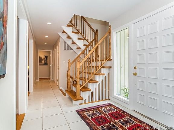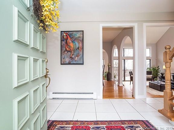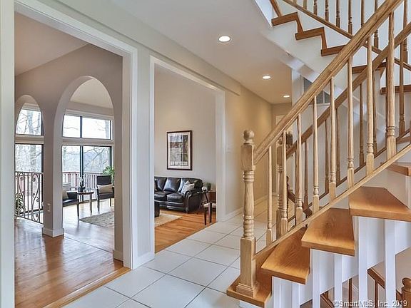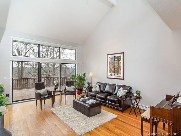 This lovely spacious contemporary home will captivate you with it's warm appeal accented by walls of windows, sun-filled rooms and casual living spaces. Step into the inviting foyer to see through the arched entryways to the dining room and dramatic two story living room complete with a cozy fireplace nook that's perfect for gathering family and friends on cold winter nights. The bright kitchen offers brand new stainless steel appliances, granite counters, an island and separate eating area and is adjacent to the family room with vaulted ceiling, stone fireplace and sliders to the back deck. The large master bedroom and bathroom has a walk in closet and is located on the main level. There are 3 additional bedrooms with a full bath on the second floor. The huge finished walkout lower level provides many options for entertaining, has a bathroom and a separate room for a home office or gym with plenty of storage possibilities. Sited on 2 private acres with mature trees and perennial gardens, the home offers privacy yet is convenient to shops, restaurants, trains and schools. Don't miss this modern home