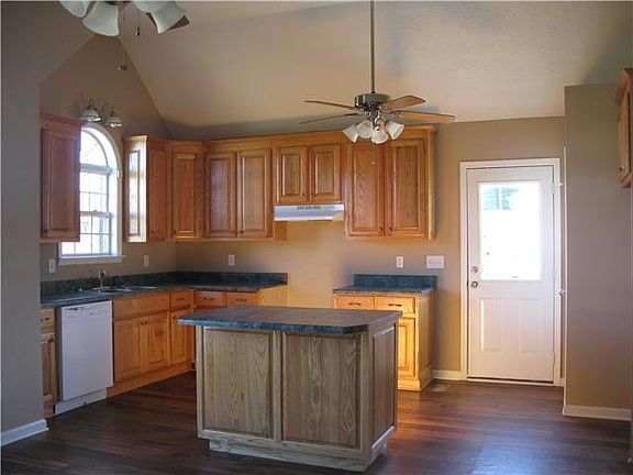 Beautiful vaulted ceiling in the kitchen, dining area, Island serving bar , large living room.