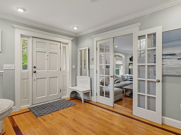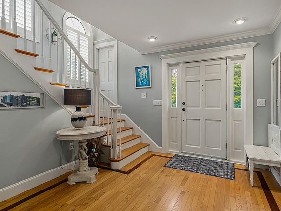 Nestled on nearly two beautifully landscaped acres on a quiet cul-de-sac, this exceptional property offers a rare combination of natural beauty, privacy, and luxurious living. The centerpiece of the outdoor oasis is a stunning PebbleTec pool with a waterfall, complemented by a serene pond and lush gardens. An outdoor shower and poolside bathroom add to the convenience and resort-style feel. Inside, skylights flood the main level with natural light. There are 9+ foot ceilings, highlighting the open, thoughtfully designed floor plan. The gourmet kitchen features custom cabinetry, granite countertops, a breakfast bar, and flows seamlessly into the dining area, sitting room, and family room—all with sweeping views of the grounds. A cozy formal living room with a wood-burning fireplace and glass French doors offers a quiet option where one can retreat. Hardwood and ceramic tile flooring extend throughout the home, which also benefits from radiant heat—on the main level and in the oversized 3-car garage. Upstairs, you’ll find two en suite bedrooms, along with a third en suite bedroom with a sitting area—currently configured as an accessory dwelling unit with a private entrance but easily reconnected to the main home. The finished lower level offers flex space that includes a 3/4 bath, ideal for a home office, gym, or media room. Additional highlights include a top of the line Buderus heating system, new roof, fencing, and gated entrances to a circular, estate-like driveway.