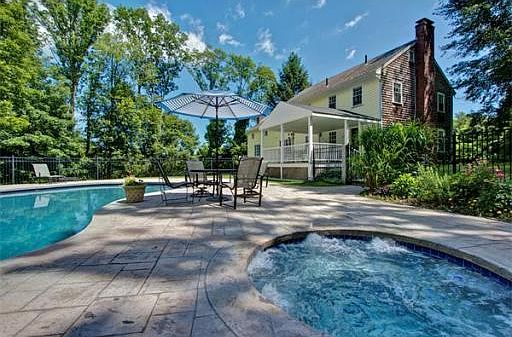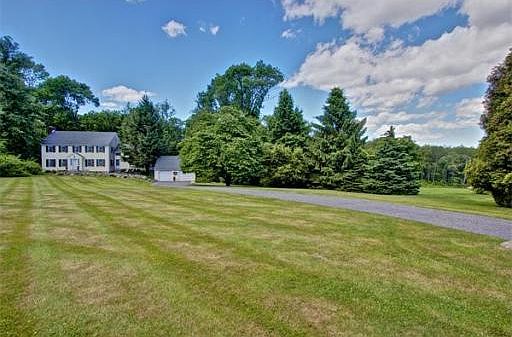 First Public Open House on Sunday, October 28 from noon to 1:30pm! Estate area and choice location for this antique reproduction Colonial. This southern exposure 5 bedroom, 3.5 bath home is located on a scenic road yet close communuter location. Beautiful in-ground pool and tennis court on property. Front-to-back living room with fireplace opens to covered deck overlooking gunite pool with waterfall and spa. Country kitchen opens to charming family room with fireplace, back staircase, window seat and second private deck with expansive bucolic views. Spacious and bright lower level.