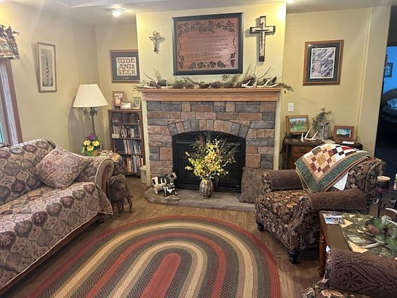 Beautiful, efficient, well-maintained 2 bed/2 bath, 2133+/- sqft home on 1.16+/- acres, irrigated with from a well. Oak kitchen cabinets w/27'+/- of cabinet space, slide outs. All doors handicap access. Shower in master bathroom has handicap access along with handicap ramp on side of house. Sunscreen patio 50'+/- long. Landscaping with pine trees, fruit trees, shrubs. Garden area and dog proof fencing. Automatic sprinklers and irrigation well. RV parking + plug-in + dump. 220-volt plug-ins in garage/shop + natural gas heating, insulated, workbenches, shelving. Separate reloading room in shop. Garden storage room attached to shop. In the county of Big Horn, adjacent to town. Move in ready! Quiet location, near hospitals.
