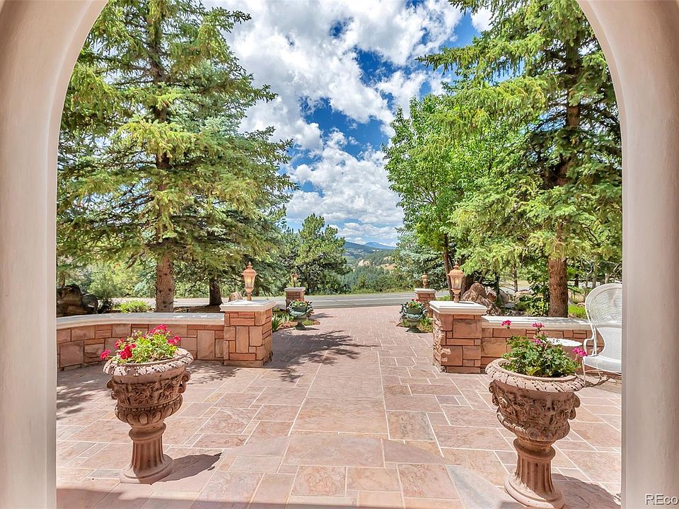 Soon to be featured on an episode of an HGTV program, the iconic Lookout Mountain angel house sits upon a full acre and boasts unparalleled elegance with a Mediterranean feel. From the moment you step through the enormous hand carved double fruitwood doors, you're greeted by the grandeur of vaulted ceilings and marble floors. This will lead you through a thoughtfully designed interior, including an inviting atrium and a private interior courtyard. The architecture has maximized ample natural sunlight and private views from every window. Indulge in the custom ash wood library or unwind in the media room tucked in the lower level. The generous kitchen could be a chef's dream. Ascend to the rooftop patio by stairs or elevator for panoramic views and a perfect setting for relaxation. The home has several additional tucked away spaces including a private office, meditation room, massage room, an undefined space that could be a perfect home gym, and a good sized storage room. Understanding it's not a home for everyone, with some vision and a few updates this house is easily selling for $3,200,000-$3,500,000. Several comparable sales in the area support that number. A discerning eye will appreciate the craftsmanship and opportunity. With a convenient 30 minute drive to downtown Denver, 60 minutes to Breckenridge and 90 minutes to Beaver Creek, your dream home awaits - schedule a private tour today.