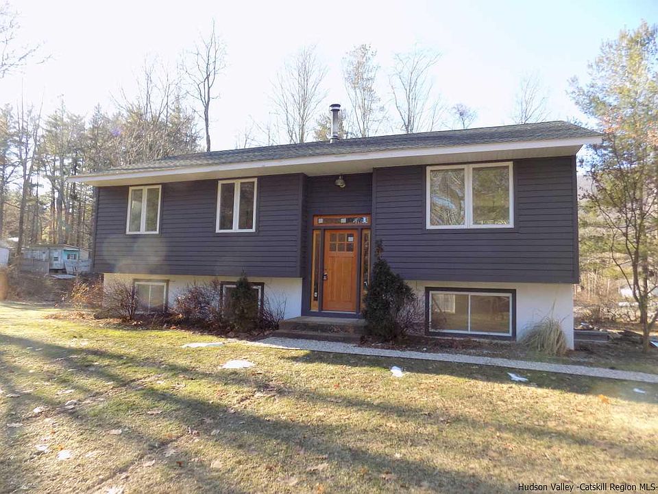 Fabulous modern renovation of a mid century home located on almost an acre in Mount Tremper, halfway between the Catskill Mountain villages of Phoenicia and Woodstock. Enjoy hiking, biking, skiing, trout fishing, kayaking & more. Close to the Ashokan Reservoir trails & fishing. This brand new, light and open kitchen features silestone countertops, sleek contemporary cabinetry, black stainless appliances and a hands free kitchen sink fixture. The living space is open & inviting. The lower level is open and bright, with a huge room for work or play and another brand new full bath. Perfect for home office(s), home entertainment &/or guests. The new roof, siding, deck, doors and most windows, make this home feel brand new! The heat and hot water are provided by a brand new state of the art boiler. The property is level with a nice side yard for outdoor fun & room for growing your own vegetables & flowers! There's even a shed for your tools & bikes! Move right in & start to enjoy country living today!
