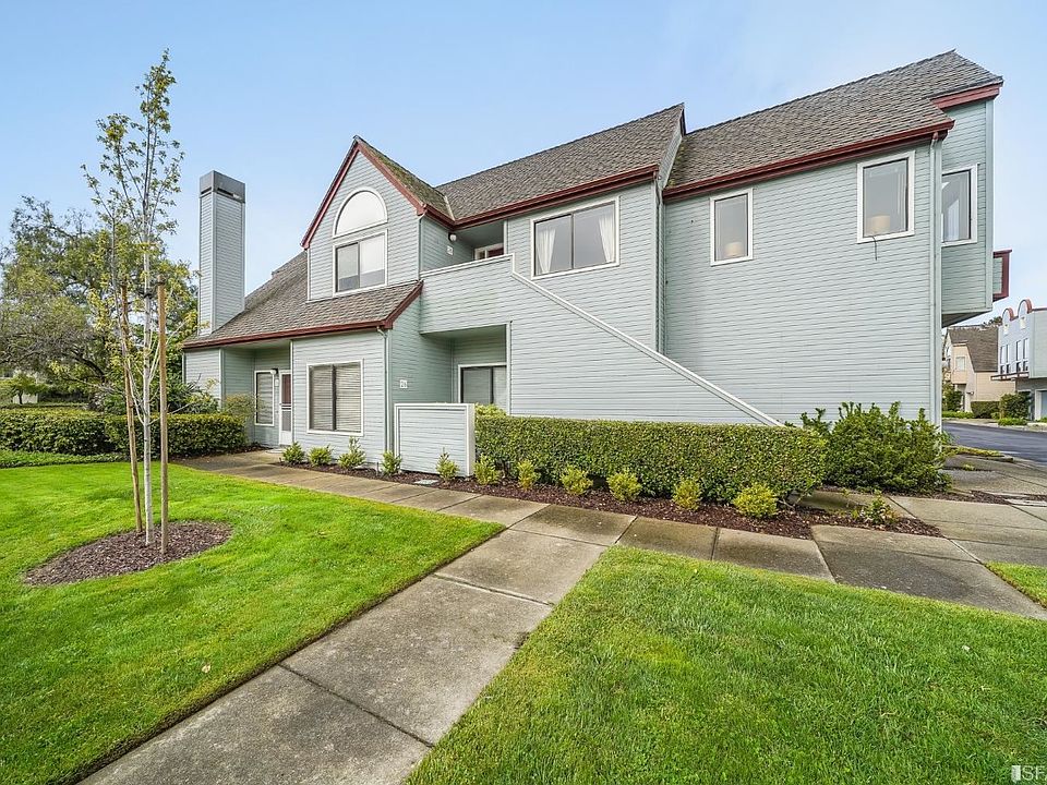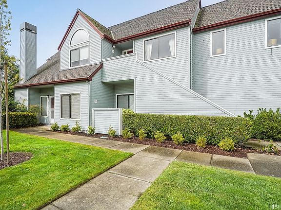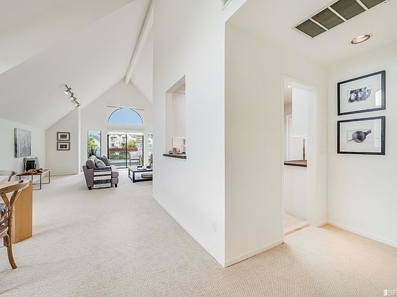 Sparkling Lagoon Views from this rare, top floor home w/ multiple soaring cathedral ceilings & wide open floor plan. Flush w/ sunlight, spaciousness & serenity this home feels huge. Enjoy your morning relaxation on the walk-out balcony, watching the water fountains & ducks. The large living room w/ water views & fireplace opens onto an ample dining room & a fully remodeled kitchen. Stainless steel appliances, a Fisher & Paykel refrigerator, new tile, wood floors, new cabinets, & water views grace this kitchen space. The Primary En Suite has wall to wall mirrored closets & cathedral ceilings, plus dual sinks & a tub/shower split bathroom. There is a 2nd bedroom plus another full bath. Freshly painted, new carpet throughout, a Laundry Room with W/D, all enhance this beauty. One car private attached garage & plenty of parking available for guests. Amenities to enjoy include a Pool & hot tub w/ Marina views or stroll along Shoreline Park to the to the Marina Village & Oakland Yacht Clubs.