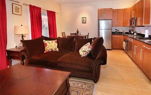 Fantastic garden level Bay Village one bedroom. The unit includes a large private patio, fully renovated interior features extra high ceilings, modern kitchen, oversized bathroom with double sinks and sunken bath tub, central A/C, gas fireplace, washer & dryer, and great storage space. Excellent downtown location just a short walk to many amenities.