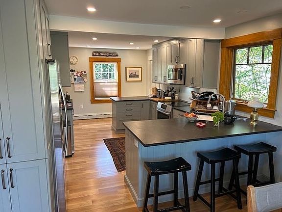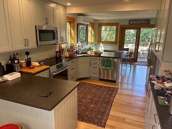 This charming waterfront, two bedroom, two bath dormered Cape is located on Kittery's Badger's Island and is available from Nov. 15 through May 1 2025. This lovely home is located at the end of a quiet street with wonderful views of the Piscataqua River back channel. The first floor features a recently renovated kitchen w/dining area, pantry, living room, den, full bath, and a large river facing deck. The second floor was recently dormered in a renovation with two bedrooms and a full bath. Enjoy water views from each room in the home. This is a non-smoking home and sorry, no pets. The property features a dock, gardens, and a seasonal outdoor shower. Cozy baseboard hot water heating. Enjoy sunsets and sunrises from this beautiful urban waterfront setting. Easy access to Route I-95, and a 5- minute walk to either downtown historic Portsmouth, Kittery Foreside, or Route 1 "Gourmet Alley". Rent includes water, sewer and basic internet utilities. Electric and heating utilities not included. Make this your unique waterfront home and enjoy all that the Maine and New Hampshire seacoast has to offer.