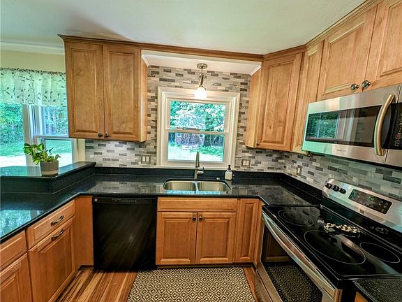 Welcome to this charming Cape Cod home nestled on a beautiful mature treed lot with fenced in backyard. The property is located on a quiet, traffic-free street and backs up to lush, green woods that you can enjoy while entertaining on the 12' x 10' covered patio. You will find ample parking in the three-car wide blacktop driveway and deep 2.5 car garage. This 2,003 sq. ft. home boasts a 24' x 16' family room, 1st floor master bedroom, as well as a 2nd spacious bedroom, all with new flooring. The 1st floor is also where you will find the newly renovated full bathroom. The heart of the home is the completely renovated kitchen that includes a breakfast bar, quartz countertops, ample maple cabinets, tile backsplash, and crown molding. All kitchen appliances are included. Located off the kitchen is the large formal dining room complete with new flooring. Upstairs are 2 updated bedrooms with new flooring along with a beautifully modernized half bathroom. Newer furnace, AC, hot water heater, and full tear-off roof. Delayed showings starting Friday 6/7 at 5pm. Open House Sunday 6/9 from 2-4 pm. Delayed negotiations Wednesday 6/12 at noon. Please allow 24 hrs. for a response.