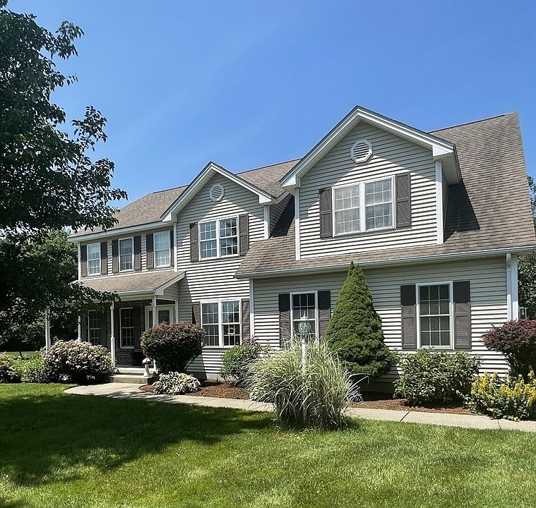 Welcome to this thoughtfully designed and custom-built home, offering the perfect blend of comfort, functionality, and style. The heart of the home features a bright kitchen with recessed lighting, tile flooring & a charming breakfast nook overlooking the backyard, seamlessly connected to a spacious family room. The first floor boasts newly refinished hardwood floors throughout, living room, convenient half bath, and a laundry area perfectly situated for everyday ease. Step outside to enjoy a stunning 40x20 deck that wraps around a large above-ground pool—an outdoor oasis surrounded by professionally landscaped grounds. Upstairs there are three generously sized bedrooms, including a serene primary suite with a private bath. A bonus room provides endless possibilities for a home office, 4th bedroom, fitness space, playroom, or media center. Tucked away on a quiet, private street, this property still offers easy access to highways, shopping, recreational areas, & medical facilities