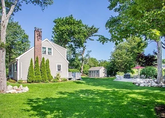 Live in one of the most desirable areas of Marshfield and located a short distance to beautiful sandy Rexhame beach, and all the new shops and restaurants that Marshfield has to offer. This charming 4 bedroom Cape has been lovingly cared for, with new heat/hot water, windows, updated bathroom, 3 mini split AC units and fresh paint in the interior. The exterior has a wonderful deck and brand new patio, accented by a stone garden and the yard has recently been hydroseeded across a freshly groomed lawn and looks amazing, updated photos reflect the condition of the new lawn and patio. An oversized storage shed has been added, as well as a stone parking area for at least 5 vehicles. The crawl space has been lined with vapor barrier and re-insulated by Mass Save plan. Town sewer,no flood insurance.