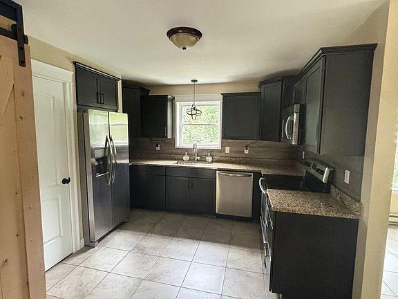 Beautiful, serene setting - set back and quiet. This apartment is 2 bedrooms, 1.5 baths with included washer/dryer, appliances, well water, electric baseboard heat and a mini split for AC, as well as a detached, insulated, powered garage with heating/cooling. Ample parking, a firepit in the backyard, and plenty of custom touches, including a fantastic chef's kitchen with granite countertops. Easy access to Gorham or Windham shopping. No smoking is allowed. 1 month's rent due as security deposit. Property is on well water, and has a purification system to be monitored by renter. All utilities will be in the renter's name. Detached, insulated, powered, heated/cooled garage is included.