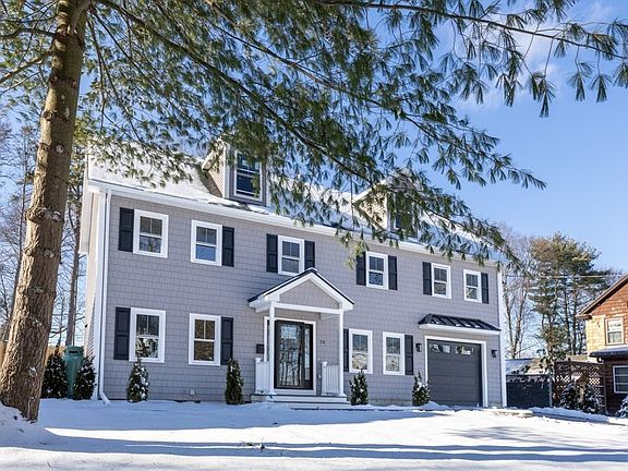 Perched high on Keene St. around the corner from Cerrone & Rounds parks in the Farm Hill neighborhood minutes to everything Stoneham has to offer in close proximity to RT 95/93. Make no mistake this is the one you have been waiting for. Essentially a new build only a small portion of the original structure was retained. This is a classic colonial w/ 4 beds, 2.5 baths, one car garage and finished lower level. High end finishes w/ all new electrical, plumbing, heating, cooling, windows, doors, floors. Kitchen features ss appliances w/ propane stove, granite and soft close cabinets. Living room w/ sliders to your paver patio for easy entertaining and access to your fenced in yard. Sprinkled lawn is perfect for kids games, gardens or pets while private and hidden from the street. Primary bedroom has deep dual closets, en suite bath w/double vanity, oversized shower. All the bedrooms are good size w/ spectacular dark walnut stained oak floors. Search is over, unpack, move in, you are home!