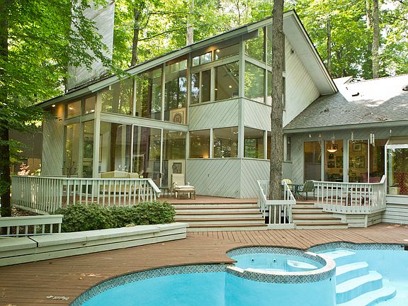 "WOW!" is what you will say - when you enter this stunning sun-lit home located on the 6th Fairway of Starmount Forest CC! Custom- built. Windows galore connect you to nature, expansive deck & swimming pool. Made for entertaining, spacious rooms flow together & the "cocktail loft" is a 'jewel' w/ built-in seating, mirrored wet bar & great view! Dramatic staircase takes you to large MSTR suite/bath, walk-in closet, sitting area / office. Unique!