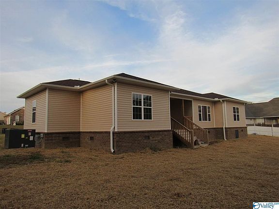Super nice, Custom built new home, built on a crawl space, on a dead end street, just minutes South of Huntsville. You will love all of the upgrades this new home has to offer. Laminate wood floors threw-out, (no carpet), recessed lights, stacked stone gas fireplace, granite counter tops threw-out. There is stainless steel appliances in the kitchen, with a nice pantry, large preping island, and eat-in kitchen. The master bath has double vanities, granite counter tops, seperate shower, and large soaking tub. Outside you will find a covered back porch, covered front porch, large oversized 1/2 acre lot, and large concrete parking pad.