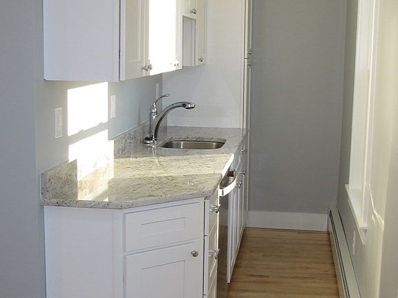 Totally renovated!! Absolutely gorgeous 2 bedroom third floor apartment with on street parking. Desirable location. Doesn't get any better than this!! Fabulous kitchen w/new cabinets, granite counter tops and stainless appliances (stove, refrigerator, dishwasher, microwave). Large new bathroom. Master bedroom w/walk in closet. Hard wood floors and high ceilings throughout. High efficiency hot water baseboard heat with hot water on demand. Commuter location convenient to shopping, highways, local colleges, etc. No Pets or smoking.