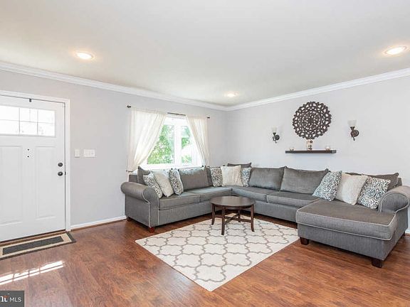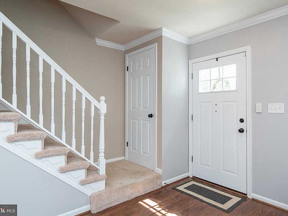This beautifully renovated end of group townhome has a great yard that backs to trees.. Neutral colors cover the walls and are accented by crown molding and gorgeous Pergo floors. The eat-in kitchen has granite counters and stainless steel appliances with large breakfast bar. The living room has a large bay window allowing for plenty of natural light, while the dining area exits to the expansive new deck (2017). Upstairs, the master bedroom has plenty of closet space. The full bathroom has been renovated and there are two additional bedrooms. The lower level is finished with recessed lighting, full bathroom, family room and laundry room. Sliders exit to the flat, fenced rear yard with storage shed. Updates include new washer/dryer (2016); and hot water heater (2016). The floorplan is open and great for entertaining.