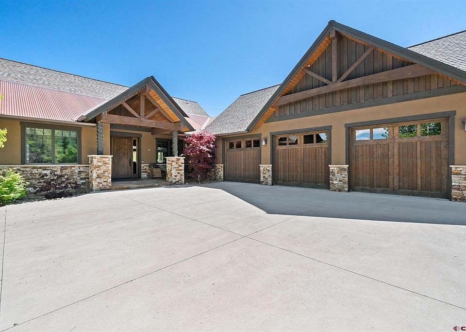 Welcome to 28 La Questa Drive! This gorgeous Kogan Built Custom Home has everything you can ask for including cathedral ceilings, high end finishes, three car heated garage and views to the La Platas and Animas Mountain all the way up the Animas Valley and Missionary Ridge to the north. Built on a private .74 acre, this home was placed on the lot very thoughtfully to access the views and maximize privacy from neighbors. Entering the home over a covered porch and stone patio through a large custom built door, you will be impressed with the cathedral ceilings in the great room, high ceilings throughout, floor to ceiling stone fireplace, tons of light & windows and an open floor plan for entertaining. The house features antique Virginia Tobacco Barn Oak floors with in floor heat for those chilly winters by the fireplace (custom asymmetric gas insert). The house also has central air conditioning throughout. The chef's kitchen is well planned with a large island and custom grill hood, granite counter tops and a six burner Kitchen Aid stove top. The well placed kitchen window over the sink lets in lots of sunshine. The dining area features a custom built walnut table, bench and chairs that are included with the sale. Also on the main level are a private library/office, laundry room, a guest room, a guest full bath, and a large master bedroom suite, and a large patio off the great room for entertaining. The private library/office has custom bookshelves and access to the outdoor patio. The guest room has a built-in walnut Murphy bed for when guests arrive. The guest bath is well-appointed with quartz countertops and a large jetted and heated bath tub. The large master bedroom suite on the main floor features large windows with views to the north, a large walk-in closet, and bathroom with custom cabinetry and storage, quartz counter tops, a separate toilet stall and features a custom walk-in tiled/stone shower. The outdoor patio off the great room has Montana Grizzly Flagstone and was built for entertaining with outstanding views to the north and north east, an outdoor tv, built in custom fireplace, built-in Alfresco BBQ Grill, Built in Beverage Fridge, custom iron railings, gas cyclone torch lamps The lower level of the home features two bedrooms, a full bath with granite and tiled shower, a family/game room with a movie theater set up ($4,000 JVC Projector with105" screen - included with sale) and a mini-bar (with bev. fridge, microwave, & sink. Pool table is included), a study/workstation alcove, custom desk, internet wiring, a workout room (rubber floors, SONOS sound, Direc tv, air conditioned) and a craft area/storage room (custom storage cabinetry). The three car 912 SF garage is heated with epoxy floors, custom cabinetry for storage and a sink with a large counter top for projects. The long sweeping driveway also holds plenty of room for additional cars. Tech details: home is wired for sound and security. Sound is controlled by Sonos system throughout including outdoor patio/hot tub area, DirecTV satellite and Apple TV streaming including outdoor patio, the house has a security system (alarm and CCTV) and CAT 6 wiring that is built-in and managed by Axxis Audio. Landscaping details: The previous Owner spent over $150,000 on the landscaping and exterior features of the home, designed by Advance Design. Custom walkways, LED lighting with WIFI control, stonework, trees, decorative grasses, flowering bushes, multiple sitting areas, pergola, sprinklers, decorative stream bed, low maintenance (no grass), custom putting green.