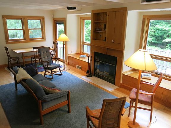 Vacation all year round in this charming bungalow in Hammond Pond Acres. This well-maintained home is very private unlike most lake association homes It has easy access to the lake right across the street. A working fireplace in the light filled living room for chilly nights. Living room has hardwood floors. Kitchen has quite a few cupboards and laundry off it. Spacious first floor bedroom has plenty of closets. The loft bedroom upstairs has a half bath. Lounge on the spacious deck to the south of the house or the connected screened porch on the west side of the house. Make smores gathered around the firepit. Play and garden in the large yard. You can live here year round, vacation here and enjoy all the amenities of Hammond Acres, including an association beach, a 9 hole chip & putt golf, tennis courts, a volleyball court and softball field. The association has events in their barn which can be rented. All of this is within a pleasant half hour drive to Northampton.