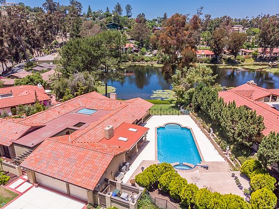 Mt. Helix's Most Exclusive Community, Lake Helix. One Level, Lake Front Estate in the Heart of Mt. Helix. This spacious and well planned home is situated behind gates and right on the lake and boasts 2 Master Suites, 2 additional bedrooms with a Jack and Jill bathroom as well as an optional room perfect for a home office. New large kitchen with a breakfast nook, new cabinets, granite counters, walk-in pantry, 6 Burner Gas Cook Top and so much more. Backyard is great for entertaining, swimming pool, spa, lush green lawns and lake views. New paint and carpet throughout. This home is also incredibly cozy with 2 fireplaces in Living Room and Family Room. Very few communities this private and exclusive exist while still being this close to everything. Enjoy country ambience of natural beauty... pool, view the ducks and birds on the beautiful, quiet and peaceful lake.