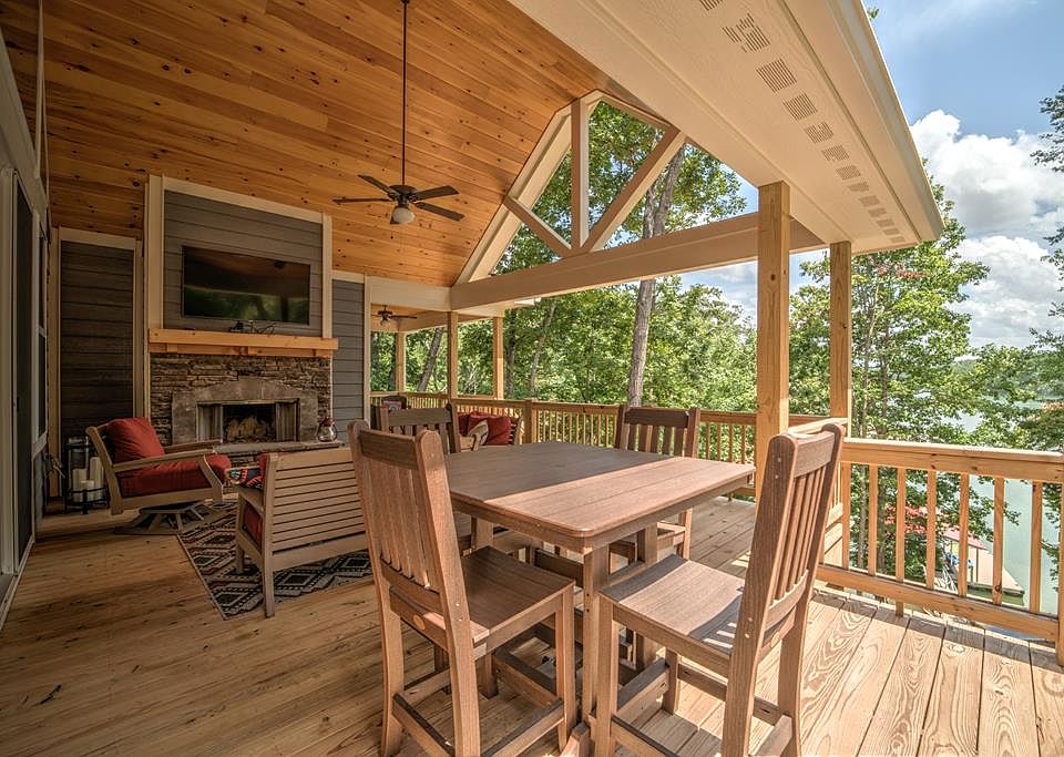 Turn This Beautiful Shoreline Of Lake Nottely Into Your Own Backyard!! Deep year round water with views of the widest part of the lake! Enjoy the open, flowing, entertaining space featuring a high-end kitchen,dining area & fireplace. Just outside the main level is a wide, covered deck with vaulted ceilings that has a fireplace with a TV above for watching all your favorite sports teams. Lower level has another kitchen area with a sink, an additional refrigerator with more spacious decking overlooking the lake. Custom outdoor fire pit on lake level. Dock included, completely turnkey.