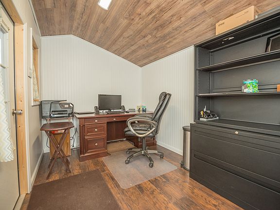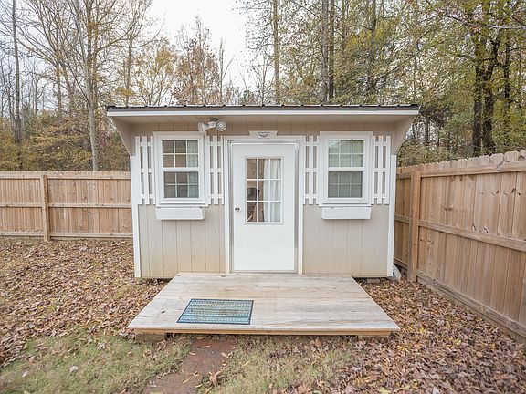 Beautiful, well maintained brick home with 4 bedrooms, 2 1/2 baths. Hard wood floors and a gas log fireplace adorn the great room and formal dining room. Master suite has whirlpool tub, very large shower, double sinks & walk in closet. Chef's kitchen has island & solid surface countertops with updated stainless steel appliances. Enjoy views of the lake from the beautiful bay windows as you dine in your breakfast area. Fourth bedroom is large enough to be a game room. A 24 ft above ground swimming pool and play set occupy your large backyard that backs up to a wooded area. A 12 by 8 ft insulated building with a/c is perfect for use as an office or a shop. There is a side-loading garage & extra parking space. Recent updates include kitchen appliances, hot water heater, roof, gutters, pool, building, and privacy fence.