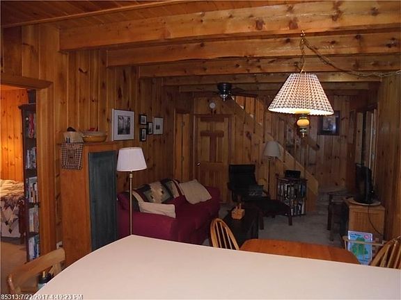 This beautiful waterfront home is located on six acres and boasts 170 feet of waterfrontage. A large porch extends the length of the house and joins an equally large tri-level deck to provide lots of outdoor living space. Both overlooking Mower Pond. The main floor is kitchen, dining, living room open concept. Two bedrooms and a full bath with area for washer and dryer. Upstairs is the master suite with full bath and walk in closet. The basement is unfinished and offers sliding doors to the outside.