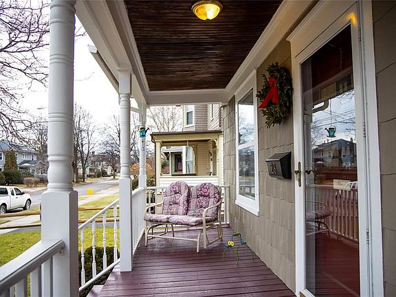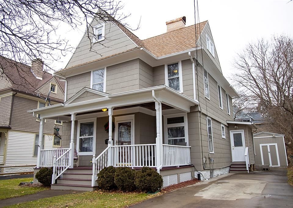THE CHARM OF A HOME BUILT IN 1920 WITH AND ALL THE UPDATES! Gorgeous original woodwork and detail, h/w floors, gas F/P, 2 sets of stairs to 2nd floor ("camelback") - from kitchen and from living room. Spacious dining room could easily be bedroom, 1st floor bath w shower. Huge updated eat in kitchen w center island that chefs will love. Lots of cabinets, plenty of light from the oversize windows at the sink and from the sliders to the yard. 1st floor laundry, 2nd floor MBR w sitting room, plus 2 other bedrooms and updated full bath. Roomy walk up attic great for crafts, musicians or artists. Central A/C and furnace approximately 10 years old, tear off roof, including most plywood in 2009. Back yard w deck and shed, landscaped. INVITING FRONT PORCH READY FOR RELAXING OR PORCHFEST 2020! This home is a beauty and a must see inside.