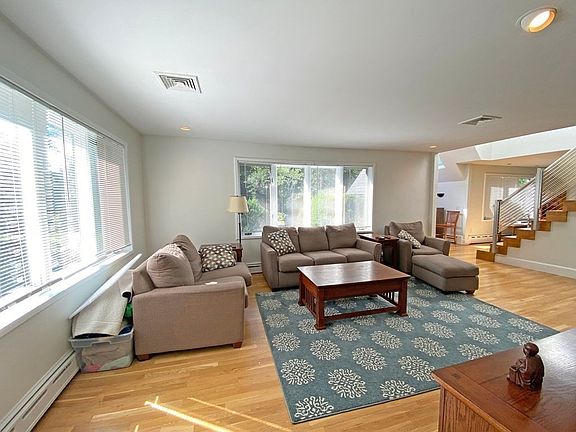 Lovely & Bright Single Family home w full southern exposure on a nice side street near Cabot School & park. Wide open living spaces featuring suspended stairs that drop down under a vaulted ceiling entryway to greet visitors. Huge LR & separate DR opens to a lovely new kitchen with SS appliances a huge quartz counter dining peninsula. Separate family room with walls of glass and a fireplace to warm your toes. 3 generous BRs on 2nd level & primary BR has custom closets, a huge 4 piece bath & cathedral ceilings. Bonus finished lower level family room, office and bath with access to the garage with parking for 2 & more parking in the driveway. Central A/C. Applicant must have good credit and references.