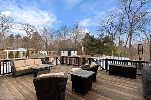 Wow!!! Rare home with legal accessory apartment. Both units are side by side with a total of 6 rooms and 2 bedrooms on each side! Accessory apartment was built in 1998 and features gorgeous hardwood floors, gas pr fireplace living room, updated kitchen with granite countertops and breakfast bar, plus dining room with sliders to oversized deck! Second level features oversized master bedroom with separate bath and walk in closet, plus a very large second bedroom and full bath! The main house has an eat in kitchen, living room, den, plus additional room and half bath on first floor. Second level has full bath & two oversized bedrooms. This is an ideal location close to highway, trains, schools, shopping & restaurants! The back yard is SPETACULAR....A PRIVATE OASIS W/ 2.33 ACRES! Oversized above-ground pool, storage shed, patio....plenty of space to garden....multiple flowering bushes! Home has Livingrm: 14X15, Kitchen: 10X13, Bedrm: 11X13, Bedrm: 11X11 Den:10X10, Playrm: 11X12