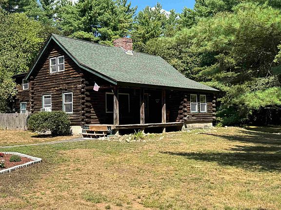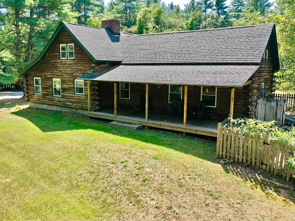 Fall in Love with This Unique Retreat! Set back on a private 3.89-acre lot, this 3 bedroom log cabin offers endless possibilities in a breathtaking autumn setting. As the leaves change, relax on one of the two farmers porches and take in the vibrant colors of the season. Inside, a stunning center stone fireplace with woodstove and wide pine floors create a warm, rustic atmosphere—perfect for cozy fall evenings. The inviting country kitchen is ideal for gathering, whether you’re sipping cider by the woodstove or preparing a hearty seasonal meal. Outside, unwind in the wood setting surrounding the property then maybe refresh yourself with the outdoor shower under crisp fall skies. A remarkable bonus to this property is the 80x30 insulated metal building (built in 2018) with its own septic system, 12 ft door, electricity. The space offers limitless potential for car lovers, contractors or anyone in need of extraordinary workshop or storage space. Conveniently located just minutes from Route 101, while still enjoying the peace and privacy of your own woodland retreat. This is more than a home—it’s a lifestyle. Don’t just drive by, come experience it for yourself this fall!