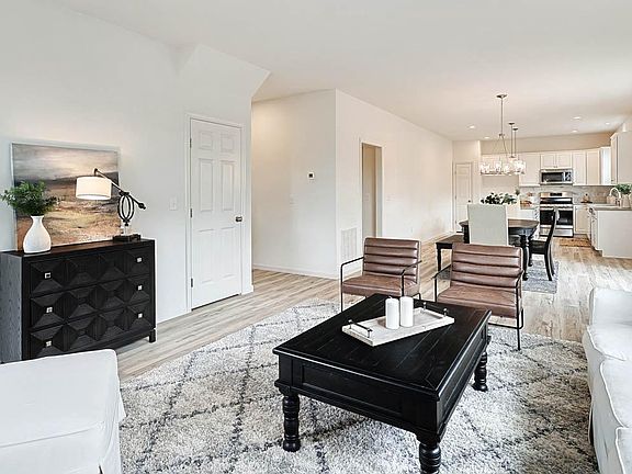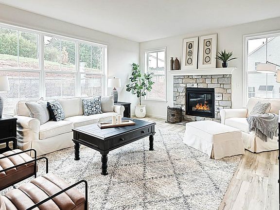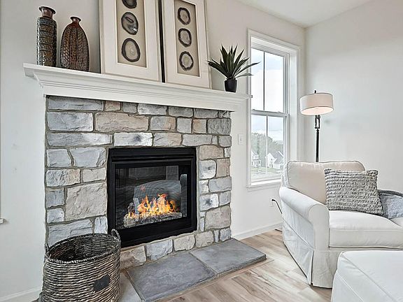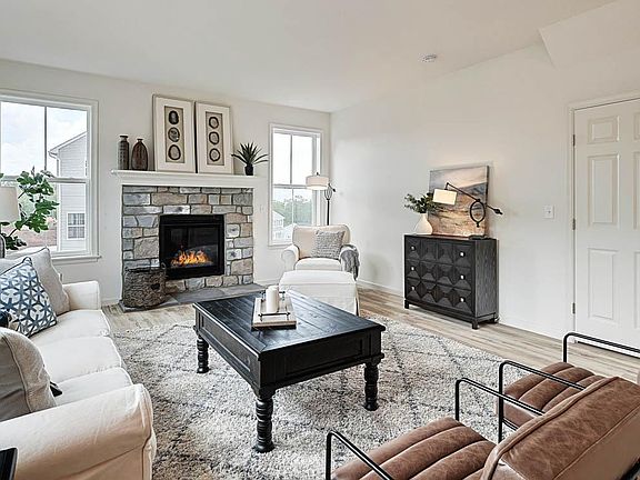 This thoughtfully planned 2-story home features a 2-car garage with mudroom entry and 9ft ceilings on the first floor. A versatile, carpeted flex space is located to the front of the home. Stylish vinyl plank flooring flows from the foyer to the great room, dining area, kitchen, and mudroom. The kitchen includes quartz countertops, stainless steel appliances, and attractive cabinetry. The great room is warmed by a gas fireplace with stone surround and opens to the dining area with sliding glass doors to the rear patio. On the second floor, there is a convenient laundry room, 4 bedrooms and a full bathroom. The spacious owner’s suite includes an expansive closet and private bathroom with double bowl vanity and 5ft shower.