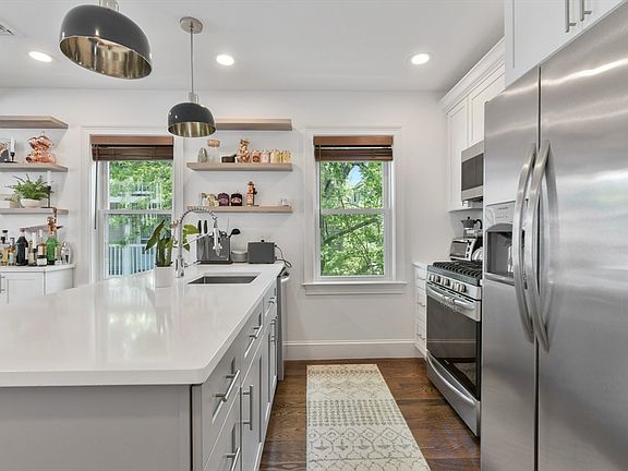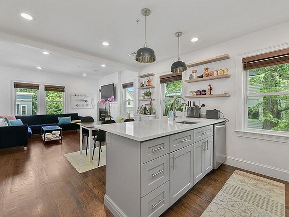 Jamaica Plain Penthouse with a DREAM PRIVATE ROOF DECK. 1 Off-Street Parking Space is included. 1217 SF w/3 Bedrooms & 2 full bathrooms. The Sun-drenched living room is flooded with natural light from dawn to dusk. This top floor home was a total renovation in 2020. Open kitchen with Quartz Island, custom cabinetry & stainless steel appliances. Gas fireplace set the mood in the winter. Hardwood floors, in-unit laundry and Central A/C. Two outdoor spaces include a front Terrace located off the living space. Then a full staircase brings you up to a private roof deck. Perfect for an owner looking to entertain friends or perhaps you have a green thumb. Your Zen Garden awaits! This outdoor space is a serene oasis in JP. The basement offers additional deeded storage. Just steps from the Arnold Arboretum, William Devine Golf Course & Orange Line (T). Low condo fee, only $257/month. Pet friendly. Offers due Tuesday 6/18 @12 Noon.
