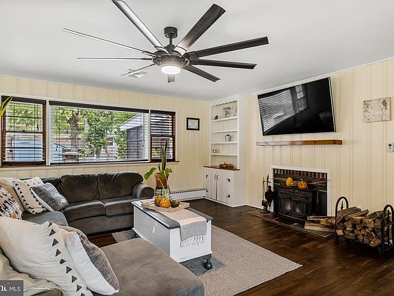 Dont miss out on this charming split level in the adorable community of Medford Lakes. With 3 bedrooms, 2 full bathrooms, original solid pine paneling and hardwood floors, theres nothing to do but move in! The main level has a gorgeous kitchen with stainless appliances, Italian porcelain tile, breakfast counter, and dining room. The large family/living room features built in shelving and a cozy wood burning fireplace that will warm the house all winter. Amazing screened in back porch with wood floors and ceiling fan that is a perfect spot for family gatherings or a quiet night at home. The finished lower level is a great bonus area and additional family room with a full bath and converted garage that could also be a 4th bedroom or kids area. Upper level features 3 bedrooms, another full bathroom and a custom built in vanity/desk, great for at home learning. Newer roof (2019), newer A/C (2019), furnace (2016). Beautifully landscaped, well cared for and available for a quick closing!