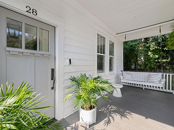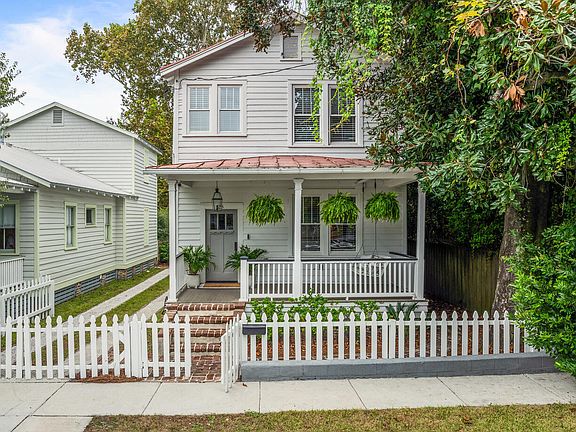 Experience the enduring allure of Downtown Charleston at 28 Lenox Street, picture-perfect with white picket fencing just off the upper peninsula of Historic King Street. This 1947 Charleston Lowcountry Classic captivates with its unique architectural elements, such as a red metal roof, white painted wood siding, exposed rafter tails, and a traditional front porch featuring a delightful porch swing--a charming spot to enjoy a cool glass of sweet tea. Located on a cul-de-sac, this home provides ample space for entertaining guests while offering easy walkable or bikeable access to an array of fabulous eateries and cafes nearby, such as Harbinger Cafe, Edmunds Oast, Lewis Barbecue, or Goat, Sheep, Cow a European Cheese Shop located on Meeting Street, around the corner.This home includes three bedrooms and two full baths, designed with an open layout on the first floor. The standout feature is the unique double-sided painted brick fireplace, providing picturesque views from the living room and dining area, fostering a spacious and bright open space. The home boasts original hardwood floors, grand staircase, corbels, and handsome wainscoting that elevate the charm. The spacious kitchen at the back of the home features white cabinetry and stainless steel appliances. Just off the kitchen is the mud room and pantry, featuring built-ins, a laundry area, a door to the back deck and private garden. The first-floor full bathroom includes a classic clawfoot tub, the perfect guest bath for visitors, and an additional storage hall closet under the stairs. The bedrooms are situated on the second level, with the Owner's Suite offering a sizable walk-in closet complete with built-ins. The two additional bedrooms offer light-filled spaces with sizable closets for storage. The back garden and fenced-in yard has served as a sanctuary for this family, offering ample space for children's activities and hosting guests. The expansive deck, featuring built-in seating, provides a picturesque view of lush plantings, historic magnolia trees, and bamboo, creating a lush natural backdrop to the yard. The detached garage is an ideal storage and workshop area, complemented by two additional storage spaces adjacent to and behind the garage. Notable Feature, No Flood Insurance is required, X Flood Zone. To learn more about this wonderful home, please don't hesitate to reach out with any questions or to schedule a personal tour.