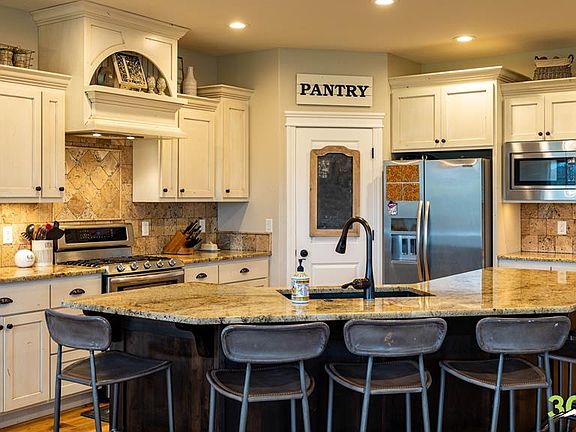 This spacious custom home is located on a beautiful creekside lot in the Liberty Ln. neighborhood. Bright, open living spaces upstairs and downstairs. Bonus rooms, lots of storage, great layout. Custom lighting, high-end finishes throughout. Great views, creekside fire pit, loafing shed, chicken coop, fenced space for animals. Professionally landscaped yard. 3-stall garage with storage shelving.