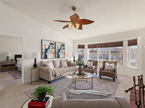 This lovely villa, nestled on a cul-de-sac, offers an open-concept main level with a vaulted ceiling and an abundant amount of natural light. The crisp, clean kitchen boosts ample storage, a large pantry and has a breakfast bar seating for two. The adjacent dining area leads to your private patio. The living room area features a bay window and a fireplace. Your main level primary suite includes a huge walk-in closet, soaker tub, a separate shower and dual sinks. The main level is completed by a laundry room, a guest bedroom, and a full bathroom. The lower level provides additional living space, a second spare bedroom, a full bathroom and a large storage room. Don't overlook the attached two car garage. Convenient to shopping, restaurants, 94, 364 and minutes from hwy 70. Location: Ground Level