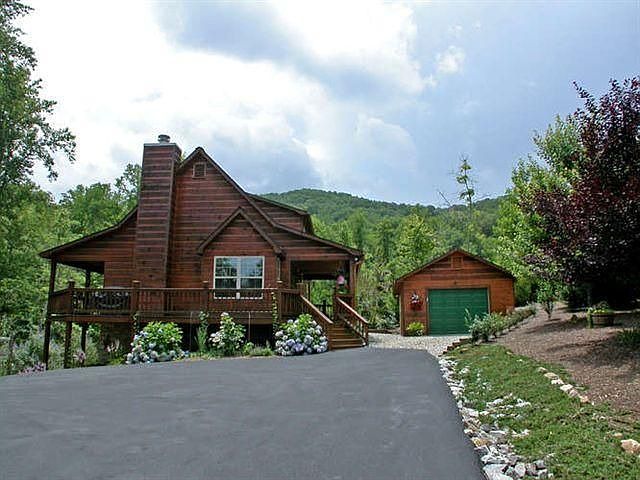 Single Family Home for sale by owner in Blairsville, GA 30512. Bright, peaceful, rustic cabin in Laurel Brooke gated Subdivision on the outskirts of Blairsville, GA, only 3 miles to marina and park on Lake Nottely. Immaculately maintained on 1 acre, featuring 2 bed/2 bath, a loft, large open kitchen w/island giving onto great room, with rustic stacked stone gas fireplace. EXTRAS INCLUDE the walkout basement which is completely built-out with a full bathroom, kitchen, bedroom, living-room and has lots of storage. Ideal for guests or mother-in-law. Skylights in great room. Detached garage. Asphalt driveway, gutters and full erosion control, underground public utilities. Ceiling fans through cabin. 3-sided wraparound porch. Original owner. Cabin has never been rented and remains in immaculate condition. No smokers allowed! This cabin is very adequate for full-time living. Many families already make Laurel Brooke their primary home!