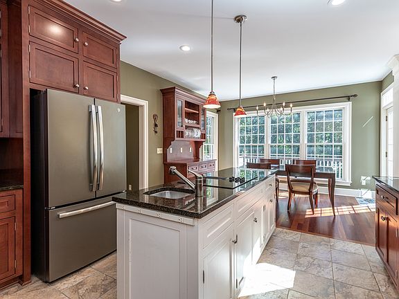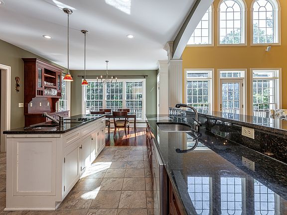 Tucked away in a beautifully maintained cul-de-sac, this stately brick French Provincial home enjoys a private, direct waterfront setting on Bull Pond, bordered by 70 acres of protected land trust. Soaring Palladian windows frame sweeping water views from nearly every room including the great room, first-floor primary suite, guest suite, kitchen, interior bridge, and expansive deck. Step inside to find an open, inviting layout enhanced by Brazilian hardwood floors. The great room impresses with 20-foot coffered ceilings, fluted columns, and a grand fireplace, while the formal dining room and cherry-paneled study with its own fireplace offer refined spaces for entertaining. The chef's kitchen features granite counters, cherry cabinetry, a center island, stainless steel appliances, and a convenient pantry/laundry room. The first-floor primary suite offers a luxurious bath and walk-in closet, while the second floor provides a guest suite with full bath, two additional bedrooms with a Jack-and-Jill bath, and a dramatic bridge overlooking the great room. The lower level is ready to be finished, already showcasing a fireplace, oversized windows with water views, and direct walk-out access to the patio. Perfectly located just minutes to Route 8 for an easy commute and close to Fairview Farms Golf Course, this home combines elegance, comfort, and an unmatched natural setting. Sellers are requiring proof of funds prior to scheduling a showing.