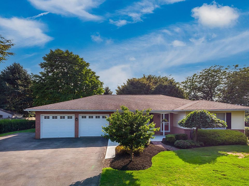 One floor living at its absolute finest in this one owner home! This 3 bedroom, 2.5 bath ranch style home situated on a meticulously maintained half acre property with absolutely stunning views in the Schuylkill Valley School District is sure to impress! Admire the mature landscaping and beautiful curb appeal as you enter the front door off the covered porch into the spacious living room. This gorgeous front room offers plenty of natural light shining through the large picture window, a generous coat closet, and Pergo flooring that flows nicely throughout most of the home. Continue on to the dining room with open concept to the 26-handle kitchen and impressive, vaulted sunroom addition. This incredible add-on boasts tile flooring, exposed wood beams, recessed lighting, ceiling fan, wainscoting, custom plantation shutters, pellet stove, ductless mini-split system, and two glass slider doors to two separate patios and large flat yard offering 14 x 20 storage shed! The primary bedroom has its very own en-suite bathroom with modern updates, and a spacious closet. Two additional bedrooms share a newly renovated full bathroom, boasting a tiled shower with tub and also offering Pergo flooring and generous closet space! Completing the main floor of this immaculately maintained home is the convenient half bath and laundry room with 3 access doors to the driveway, built-in two car garage, and partially finished basement. The finished section of the basement adds approximately 550 sq ft of living space making a great family room, playroom, den, office, man cave, and more! The unfinished section offers two work benches, plenty of seasonal storage, and houses the mechanicals. Updated HVAC in 2021. This home has been meticulously maintained by the sellers from top to bottom. Schedule your private showing before its too late!