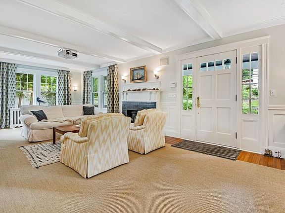 - Liv Dscrp: Fireplace, Flooring - Hardwood, Ceiling - Beamed, Wood / Coal / Pellet Stove