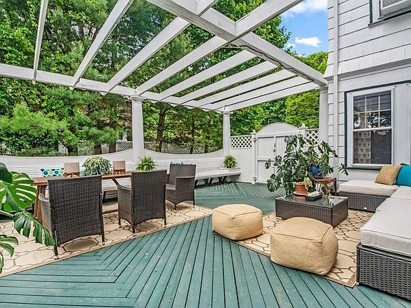 Beaut 1880 Arts & Crafts hm is tucked away on 1-way wooded lane offers restful retreat fr city life w/all the conveniences of JP. 2600+ sf is well-appointed w/9 rms, 5+ BR's,3 ½ renovated BA's (2 BR's have en-suite BA's).Farmer's wrap-around porch & private deck create a serene outdoor environment & provide plenty of relaxing or social outdoor space. LR welcomes you home w/woodstove, nat'l light, beamed ceilings & wood fls (+ projector screen & surround sound for movie night). Enjoy cooking in sunny Kit, recently renovated w/a Bfast nook, cust cabinets, granite counters, & brand new ss appls. & provides direct access to priv deck w/builtin bench seating & Italian style pergola.Over 10k+ SF lot is gardeners paradise w/mature plantings, lush trees, & a raised bed veg garden. Enjoy balconies off BR's, bsmnt storage, & garage pkg.Convenient to downtown via bikepath, T, & car, yet a world away fr hustle & bustle.Steps to Arboretum, Pond, restaurants on Centre St & nearby Longwood Med