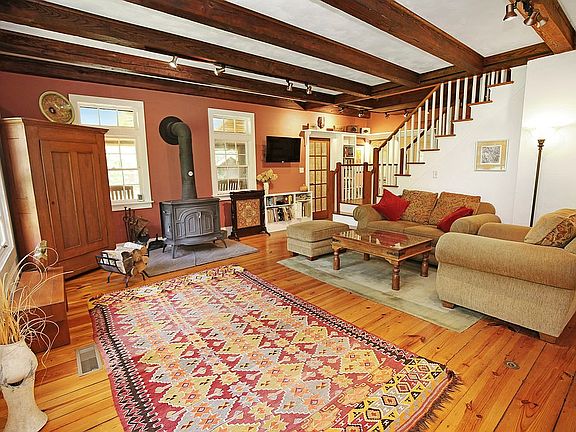 Set well back from the road on over two acres, the property ensures unmatched privacy and tranquility. And yet it's only a short walk to Woodstock's shops, restaurants, and the Trailways bus stop, making it easy for friends and family to visit with or without a car.