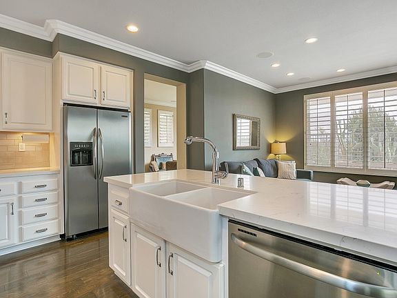 Welcome to Ridgewood in Aliso Viejo, where a spectacular "city lights" view creates the perfect setting to call home. This beautifully upgraded home offers comfort, stylish living and great entertaining space. Relax in the cheery family room which features a custom built-in media niche in a rich finish, cozy fireplace, plantation shutters, maple flooring and large windows which bring in lots of sunlight. Or, step through the French door to enjoy the delightfully finished backyard with endless views. Friends and family will enjoy keeping you company at the island/breakfast counter as you prepare a treat in the fully appointed kitchen with stainless appliances, quartz countertops and stylish white cabinetry. The Formal Dining Room is stunning and makes a wonderful place to host your next gathering with dramatic two story ceilings, grass cloth accent wall, chandelier lighting and more. The Formal Living Room offers a quiet place to cozy up with a book or just enjoy a visit with the ones you love. A main floor full bathroom, laundry room and a breakfast area round out the main floor. Second level is host to a spacious master bedroom w/view balcony and an indulgent master bathroom w/large freestanding pedestal tub, walk-in shower, dual sinks and large walk-in closet w/custom built-ins. 3 spacious secondary bedrooms and 1 more bathroom - all perfectly appointed -complete the picture. This home has it all. It's good to be home!