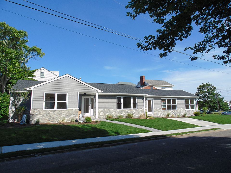 LIKE BRAND NEW. Completely renovated to the studs. Sprawling 3 bedroom ranch meticulously modernized with 2.5 bathrooms. 1800 square feet of grandeur situated on a corner Lake View lot. Just 3 blocks to the beach in desirable southend. Dual entries with main foyer leading to a chef inspired kitchen with center island, super white granite, Bosch appliances and 42'' cabinets. Sunken great room with soaring ceilings complimented by beautiful southern exposure skylights. Fireplace. Sliding doors for indoor/outdoor entertaining. Master bedroom with private spa like bath. 7 zone sprinkler syste, 6'' white wash plank flooring. Cedar Impression siding with Ledger Rock Flag Stone. Timberline roof. Anderson window. Central air. Untouched by Sandy. Structure not in flood zone.