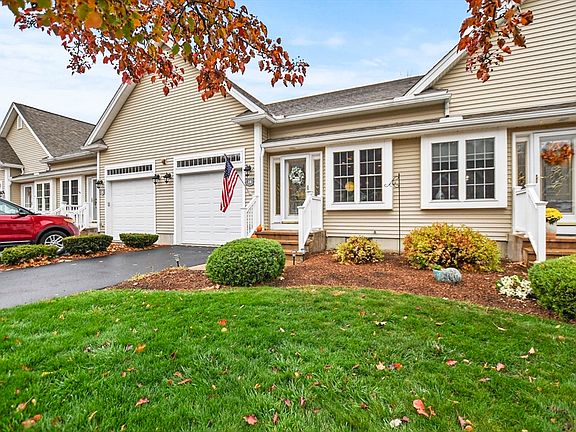 Welcome to Madison Greens, a desirable 55+ community nestled on Bents Pond. This single-level unit is in superb condition. The living room & kitchen share an open floor plan complete w/hardwood floors, cherry cabinets, granite countertops, stainless steel appliances, a central island & a pantry with pull-out drawers. Full hall bathroom w/laundry. The two bedrooms, situated at the rear of the unit, provide unobstructed views of the water. The primary suite features a tray ceiling, an en suite bathroom, a walk-in closet & a sliding door leading to a private deck w/awning, ideal for enjoying your favorite beverage & a good book. The lower level is partially finished, offering additional living space suitable for a den, exercise room, or occasional guest room, while the remainder of the basement is left unfinished. This home also includes central air, 10-foot ceilings, recessed lighting, crown molding & a one car garage. Enjoy the putting green, walking traills, fishing & kayaking!