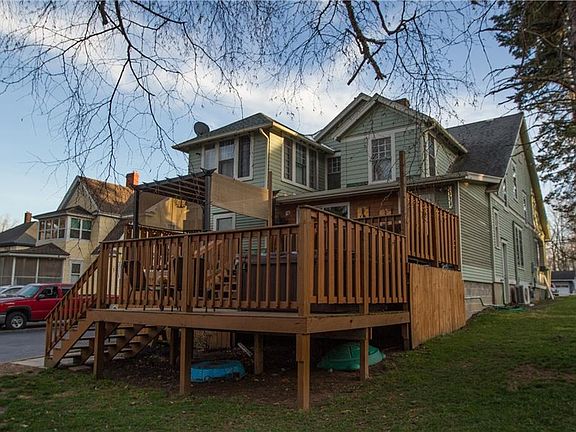 This sprawling 3 to possible 5 bedroom colonial home is a masterpiece! Strategically designed layout from the front entrance to formal open staircase living rm boasting shelf framed fireplace w/ mantle, open dining room & setting area, high ceilings & hardwood floors, efficient kitchen & pantry, open counter peninsula to family room. The back deck further expands with an enormous multi-level deck & a sense of privacy with nearly 1/2 acre mature lot bordering pasture & woods. The 2nd flr offers a master suite w/ walk in closet/enclosed sun porch, access to the full bath, 2 more bedrooms, laundry room & back stairs! The basement has a finished room too! A back mudroom, lockers, built in doggie kennels are fantastic! Black top drive with big parking area leads to 40x32 garage! Must see!