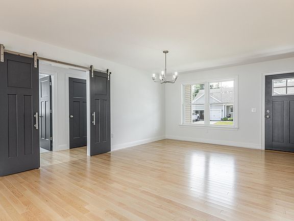 A modern twist on a classic design, this NEWLY COMPLETED single level home is the perfect combination of spacious living, modern construction and current design trends. Located in Cascade Falls, this walkable neighborhood abutting nature trails is only a short distance to sandy beaches and only minutes away from Portland's renowned restaurant scene. This fabulous home features open concept living space with white kitchen cabinetry, large island with seating, quartz tops, tiled backsplash and stainless steel appliances. The living room includes a corner gas fireplace with marble tile surround and custom mantlepiece. The clear, natural maple floors balance the crisp painted walls and gray 3 panel doors. The private owner's suite includes full bath and walk-in closet while 2 additional bedrooms, plus full bath, are separated from the living area by a barn door closure. The mosaic tiled baths with quartz tops and undermount sinks work with any color scheme. Bath mirrors and accessories are also include. An awesome laundry room with shiplap molding, white cabinetry, folding area and hang-to-dry space plus coat hook rack make this space a combination laundry and mud room. Energy efficient heat pumps provide indoor climate comfort with clean energy technology. Also noted are spacious closets; full, unfinished basement for future expansion; covered front porch; cedar deck; 2 car garage on ¼ acre lot. Not to be missed, this is a well-built home in a welcoming neighborhood!
