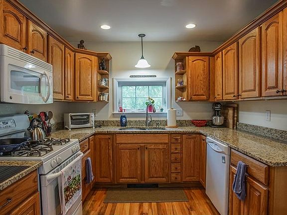 Totally renovated!! Adorable two bedroom , two car garage home! Totally updated kitchen with granite counters, oak cabinets ,gas stove,recessed lighting and hardwood floor. Large updated bathroom with granite vanity and tile floor. Master bedroom has two closets and hardwood floor.Freshly painted deck. Level 1/3 acre with paver patio, firepit and stone walls. Many features including new oil tank, generator hook up, new water softener, outdoor lighting. All new plumbing,electrical, floors and sheet rock from foundation up! Great starter home or condominium alternative! Excellent condition and well maintained home!