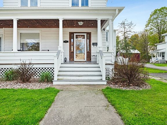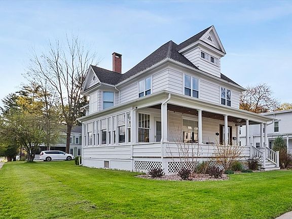 Village colonial home offers an unbeatable combination of space, functionality, & prime location. With 7 bedrooms, 4.5 baths, & over 3,000 sq ft of living space, this property provides ample room for new owners. Nestled in a wonderful corner neighborhood, this home boasts a detached 1,200 sq ft barn that serves as a garage w/ enough space to accommodate 1-3 vehicles. Electric garage door, making it a convenient & secure storage solution. Newly redesigned kitchen, dining, & mud room space creates a beautiful, bright, & welcoming heart of the home. Great counter space and a seamless flow between the cooking & dining areas. The addition of the mud room near the first-floor half bath provides convenient access from both front and back of the house, making it a practical and stylish transition space. 2 large living rooms, which exude lovely character & charm. Office/Playroom has stained glass window & built ins! These expansive, light-filled spaces offer plenty of room for relaxation & entertainment. Enjoy fresh air from the wide front porch or the patio space in the backyard. Enclosed seasonal south facing side porch! Newly installed gas furnace, HVAC unit & hot water heater.