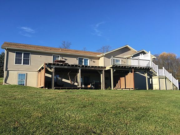 This beautiful home is located on 2.28 acres, in the Cedar Hill Subdivision on a private road. The view is amazing and can be enjoyed on the large deck or patio which includes a hot tub. Inside the home there are many unique features which makes this one a must see. It has 4 bedrooms with California closets, 3 bathrooms, a spacious Kitchen, a breakfast nook, large open living room and dining area, along with a full finished basement. The Master bathroom features a steam shower with a gorgeous double sink vanity which includes soft cabinetry. Hardwood, tile and adura flooring are throughout the entire home with Radiant heat in some areas.