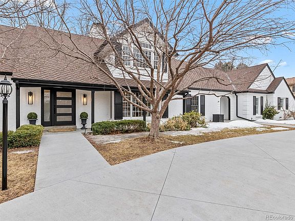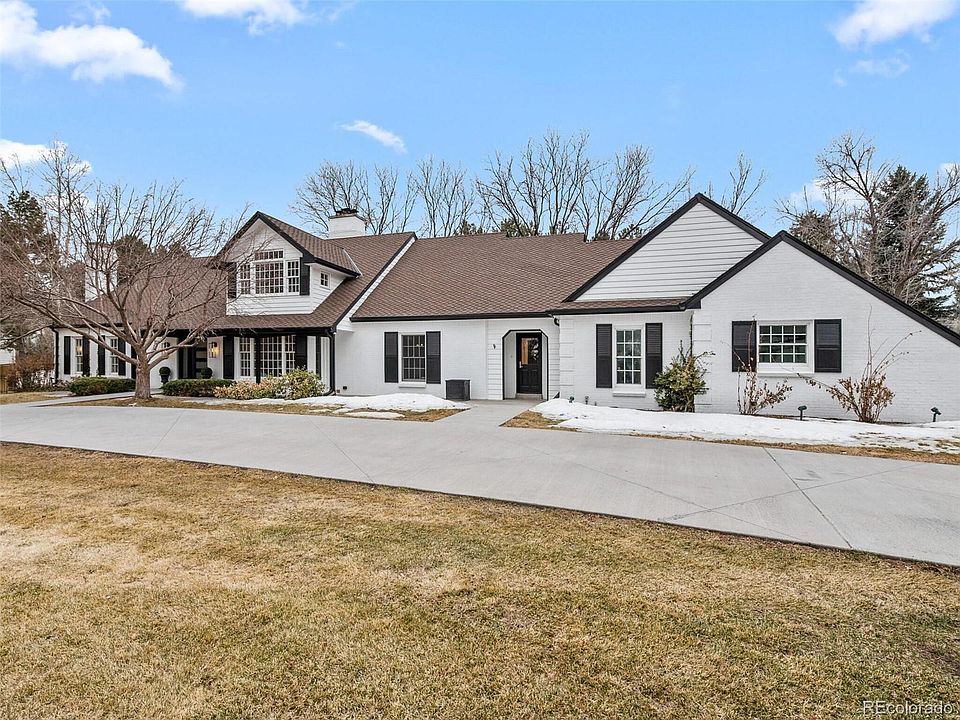 This Iconic White & Black Styled Farmhouse in Old Cherry Hills Village is a rare find! Newly renovated with designer lighting, paint & carpet throughout. Situated on almost an acre in the coveted Cherry Creek School District and renowned Cherry Hills Village Elementary (CHVE), this 2-story brick home is a must see! As you approach the property you are greeted by grand black-iron fencing with electric gates that opens to the large circular driveway. As you enter the home you are greeted with a 2-story entry, sitting room with fireplace, formal dining room, main floor primary bedroom, a designer white kitchen, built-in kitchen dining-nook, mudroom, and 3-Car garage with new Epoxy Flooring.